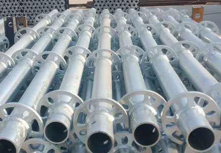 圓盤式腳手架結構少且搭拆方便,專用部件及基本結構可適用各種結構的建筑物,主要由立桿、橫桿、斜拉桿組成;立桿、橫桿與斜拉桿結構可在廠內(nèi)完成,這樣能較大限度防止零散配件的丟失和損壞,減少了活動鎖緊件能較大限度的防止腳手架造成的隱患,還能很好的減少施工單位的經(jīng)濟損失.